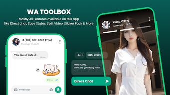 该应用程序的其他功能包括状态保存器,允许您查看、保存和分享来自其他社交媒体平台的状态。您还可以使用状态制作/编辑功能创建和编辑状态。该应用程序还包括拆分视频功能,用于创建轮播或故事状态视频,以及头像个人资料、带有消息模板的快速回复、有趣的文本消息、花式字体样式等等。